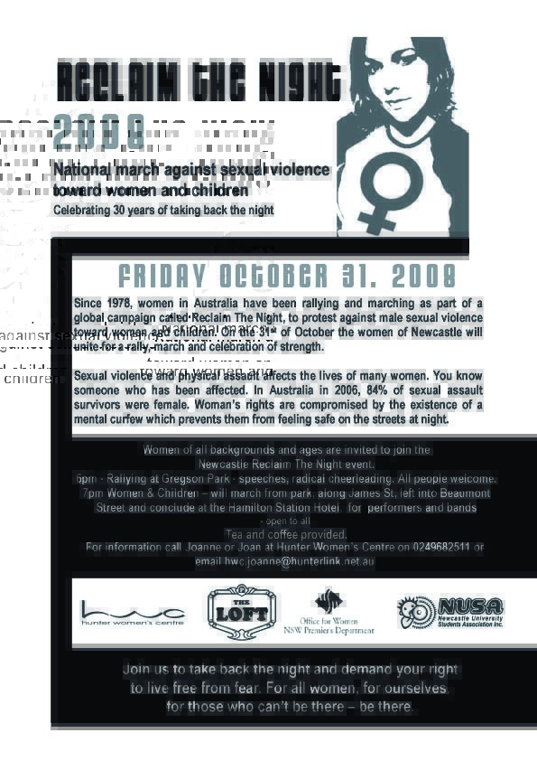‘Reclaim the Night’ (RTN) in Newcastle was held in 2008 on Friday 31st October.